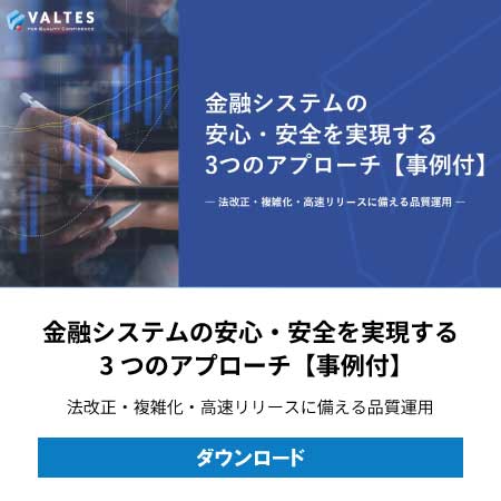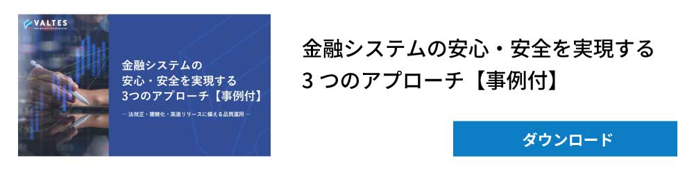 また、バルテスでは金融システムにおける品質課題や、その解決に向けた具体的なアプローチについて解説したお役立ち資料を公開しています。