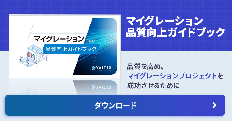 バルテスでは「マイグレーション品質向上支援サービス」をご提供しています。難度の高いレガシーシステムのマイグレーションプロジェクトに対し、仕組み化されたテストサービスによる品質向上を実現します。システムマイニングツールを活用し、現行システムフローを可視化し、マイグレーションを進めていきます。また、マイグレーション経験者を中心とした品質管理支援担当者(QMO)がプロジェクトに入り、品質活動を強力に推進いたします。詳しくは「マイグレーション品質向上支援サービス」や下記資料をご覧ください。