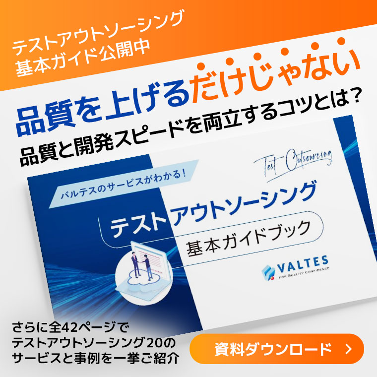 当サイトでは、テスト技法を学びたい方、アジャイル開発やマイグレーションのテスト手法について知りたい方、テストアウトソーシングサービスに興味のある方へ、ダウンロード資料を多数ご用意しております。ぜひダウンロードいただき、資料をご活用ください。