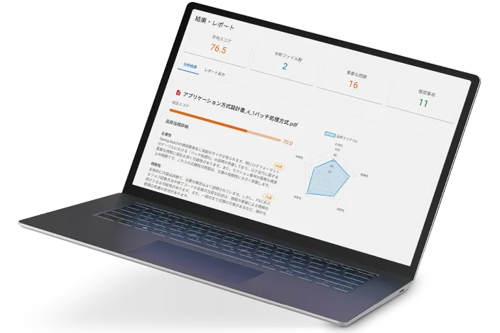 - 設計仕様書などのドキュメントを読み込み、バルテス独自のインスペクション観点でAIが分析を行い、問題点や改善点をレポートします。