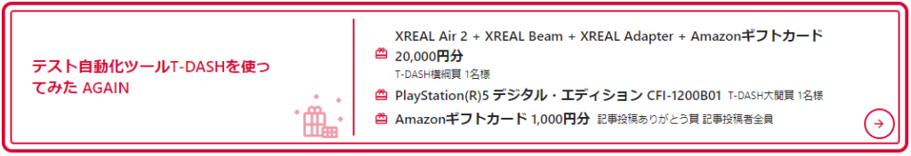 <T-DASH運営からのコメント> 複数記事執筆の中T-DASH標準のSeleniumではなくPlaywrightを利用して新たなT-DASHの可能性を見出していただいた点で選出させていただきました。 こちらの記事ではテスト自動化の導入観点なども開設してくれていて非常に参考になると社内からも声が多くありました。 |