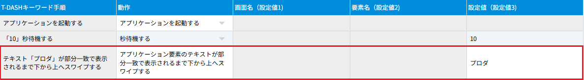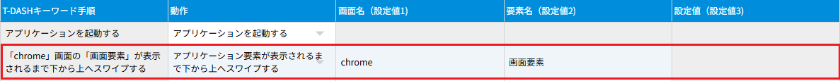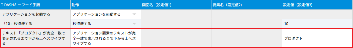 したがって、もしスワイプする回数が残っていても、画面の表示はそれ以上変化しません。 - 必須条件:「アプリケーションを起動する」関連のアクションがテスト手順に含まれない場合は、動作しません。