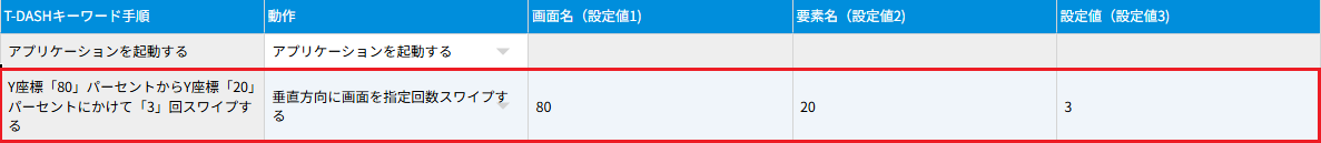 | 設定値(設定値3) | スワイプする回数を半角数字で入力する |