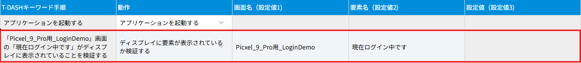 - 指定した要素がアプリケーションに表示されているか検証します。