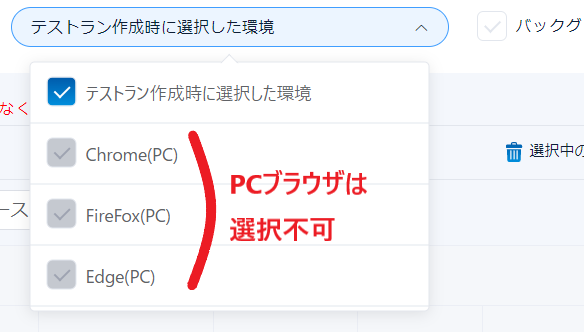 Chrome(PC),FireFox(PC),Edge(PC)は選択できないようになっております。