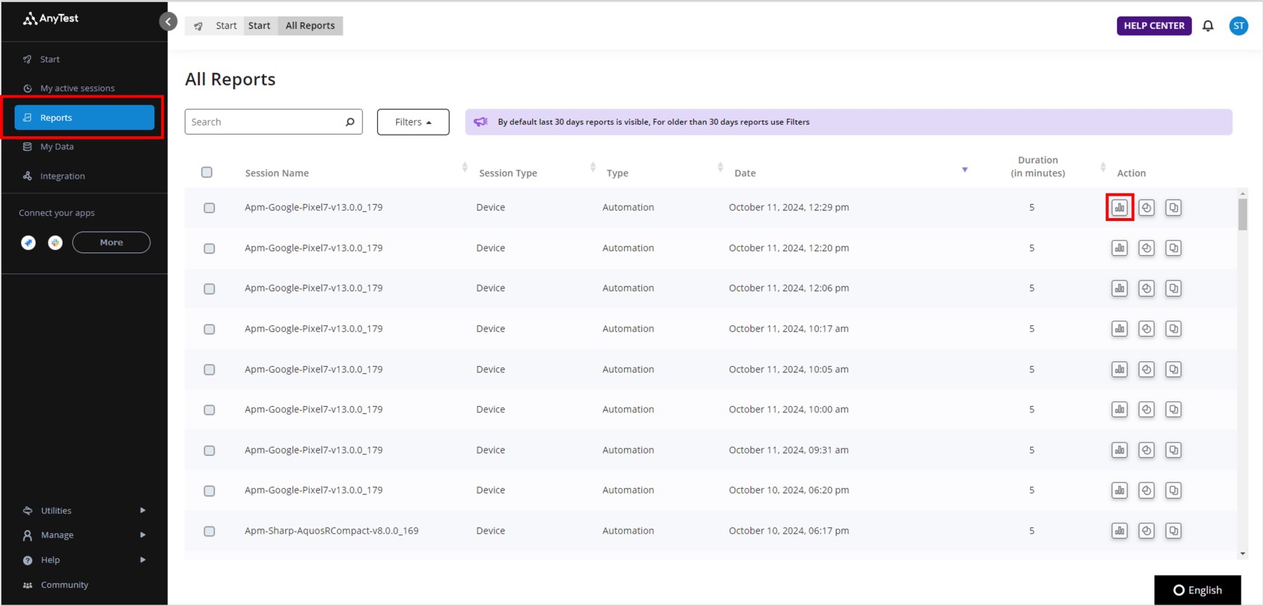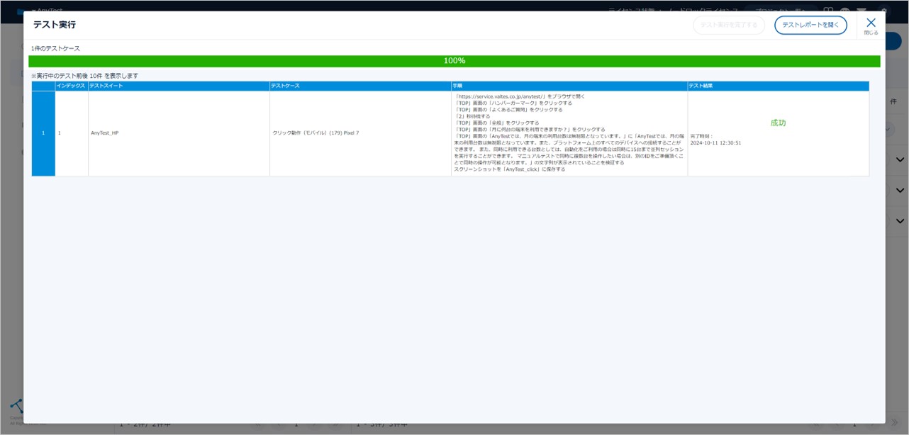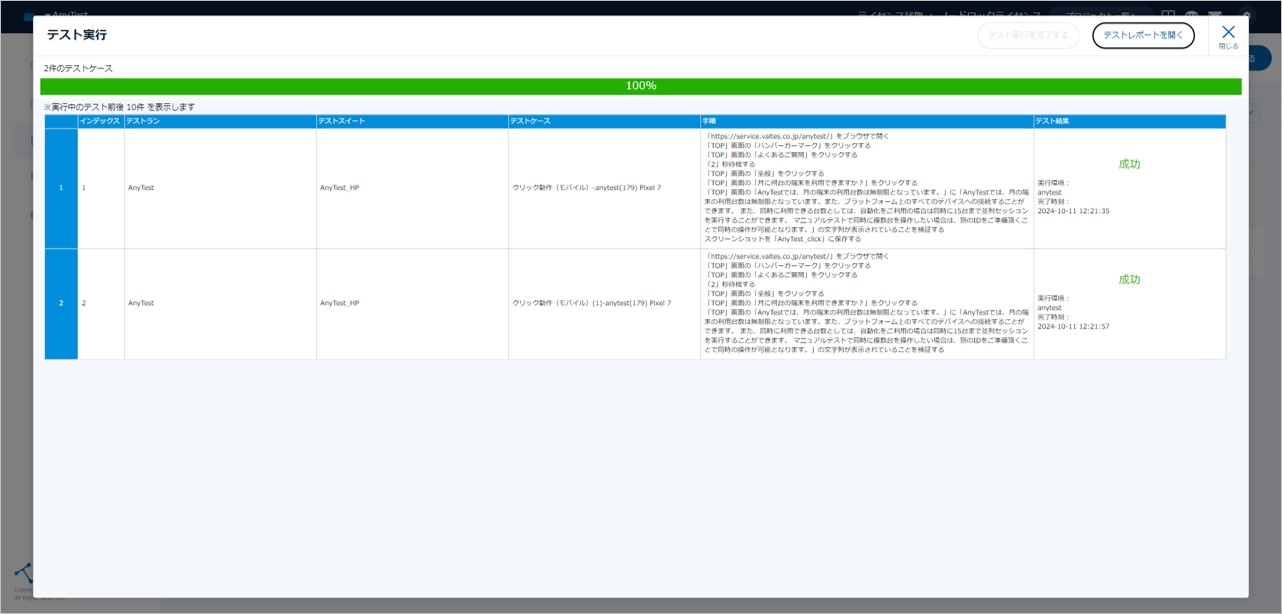 ■AnyTestでテストレポートを確認する