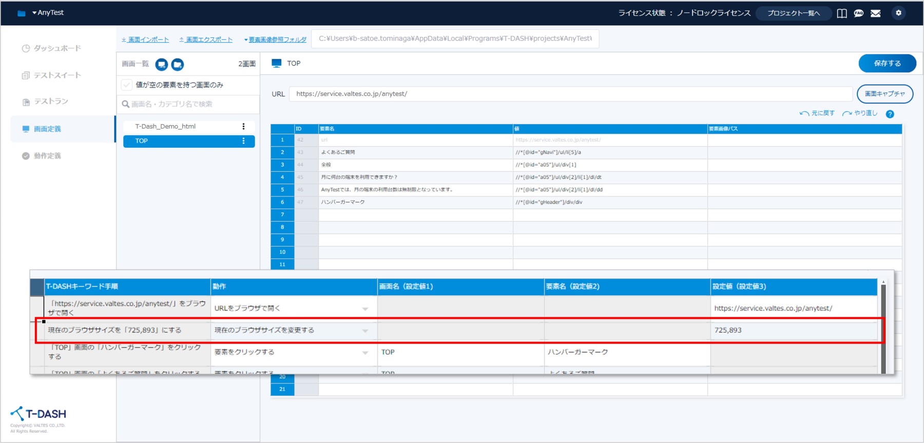 T-DASHとAnyTestを連携することで、AnyTestを利用したモバイル端末での検証の自動化が実行可能になります。