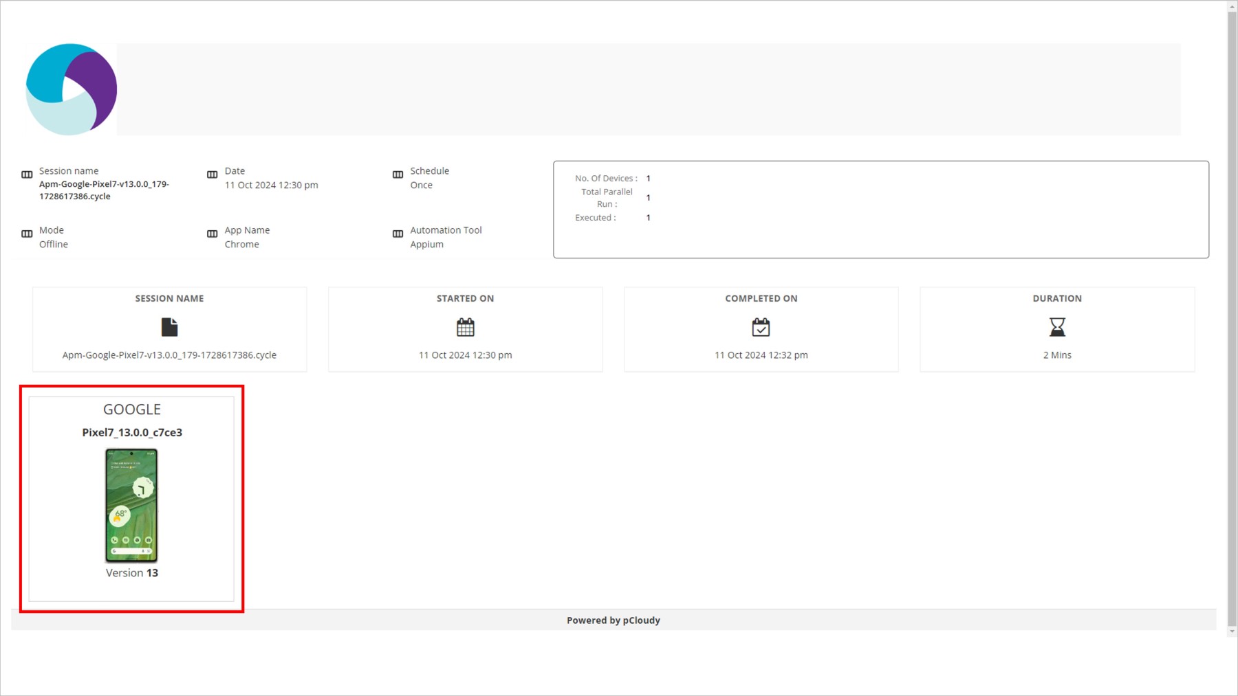 3. 作成したテストラン名をクリックします。