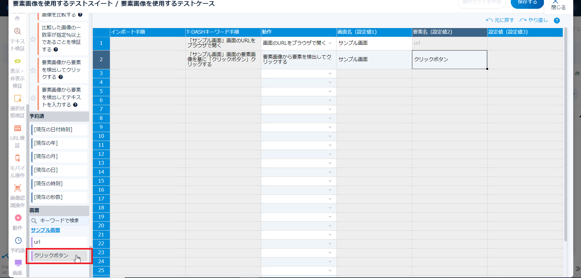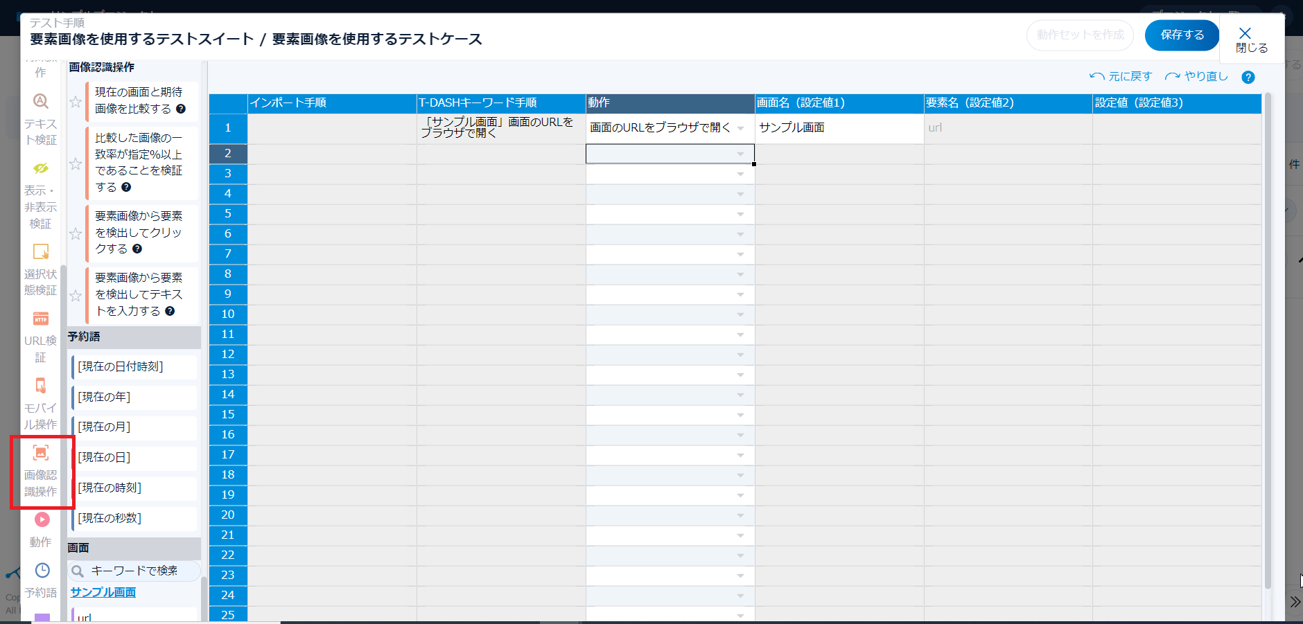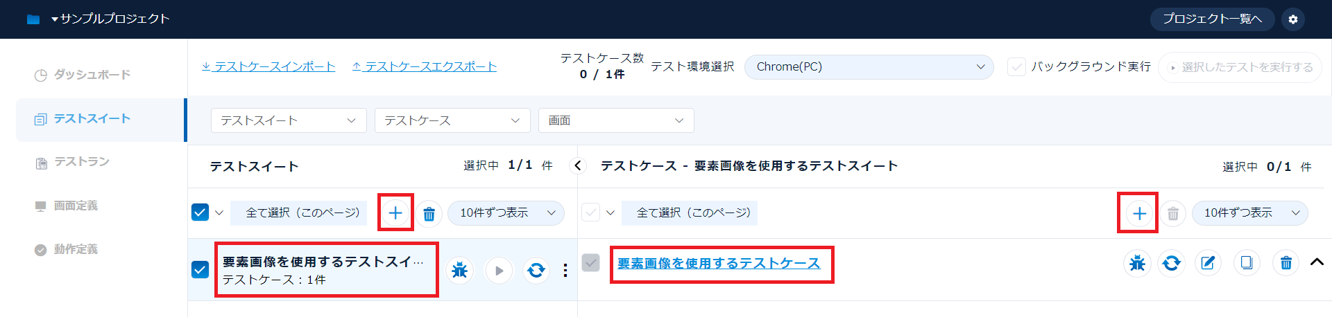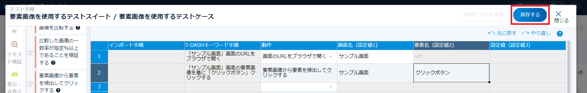 サンプルプロジェクト > html_sampleテストスイート > 画像認識操作テストケースでは、下記動作を2パターン含めています。片方は通常実行、もう片方はバックグラウンド実行を想定した手順であるため、必ずどちらかが失敗します。