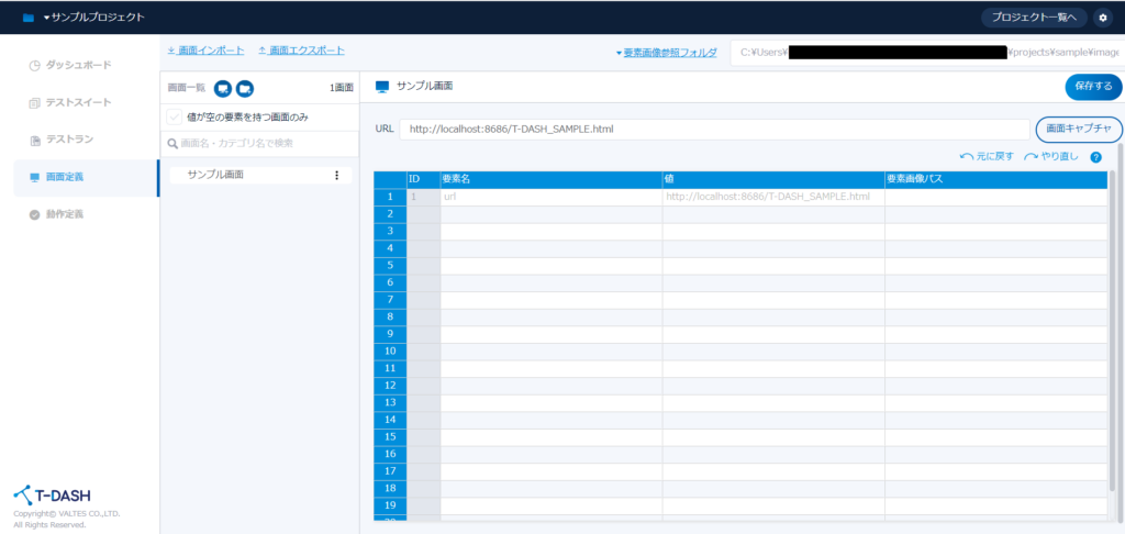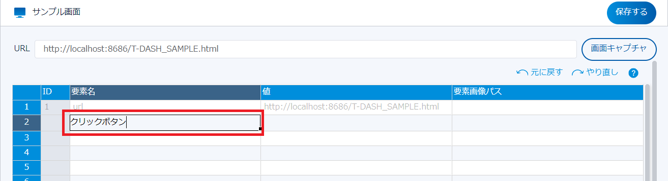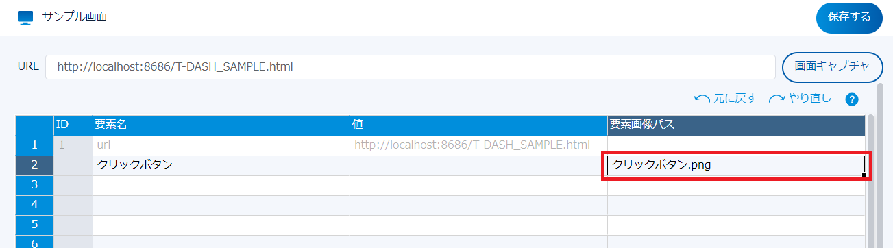 ・「画面名」画面の要素画像を基に「要素名」に「設定値」を入力する