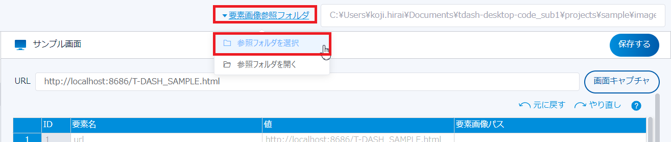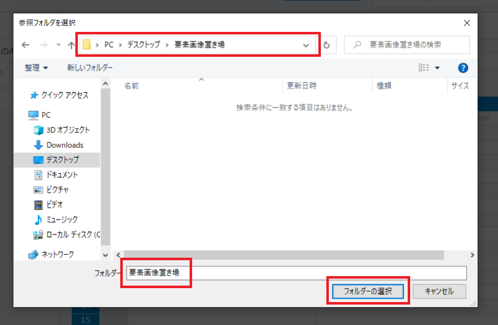 ・要素画像参照フォルダボタンをクリックし、参照フォルダ選択ボタンをクリックする