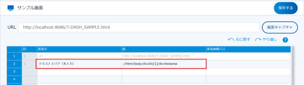 2. 「1.」で追加した要素に予約語または、予約語を含む文言を入力するテストケースを作成する