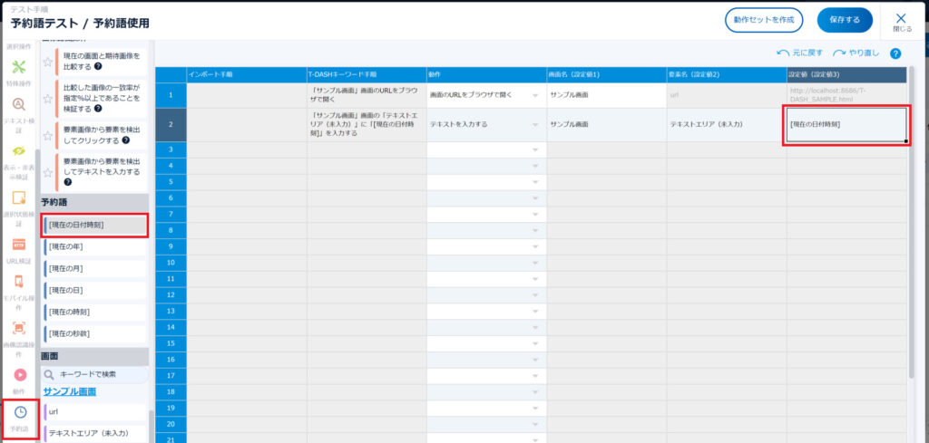 ※設定値に予約語を使用し、テスト実行時に予約語に対応したデータに置換して実行します