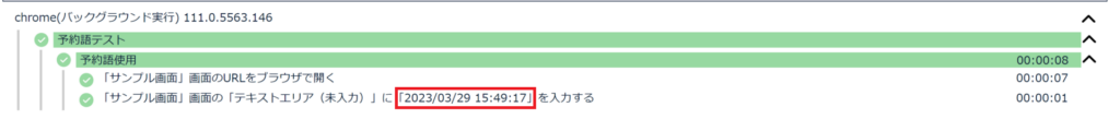 (例)〇:設定値(設定値3)「テスト実行時の時刻は_[現在の日付時刻]_だった」
