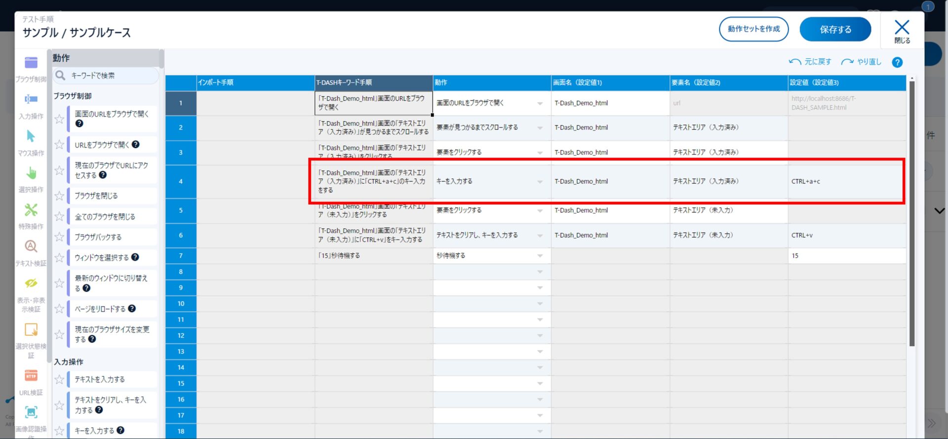 | 1 | 入力操作 | キーを入力する | 入力したいキー(a,b,c,d…)やショートカットキー(CTRL+cなど)を入力できます ※SeleniumLibraryのPress Keysに準ずる入力が可能 |