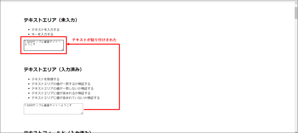 ショートカットキーでコピーされたテキストが、別のテキストエリアに貼り付けされる。