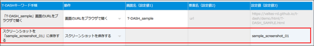 | 設定値(設定値3) | スクリーンショットのファイル名を入力する |