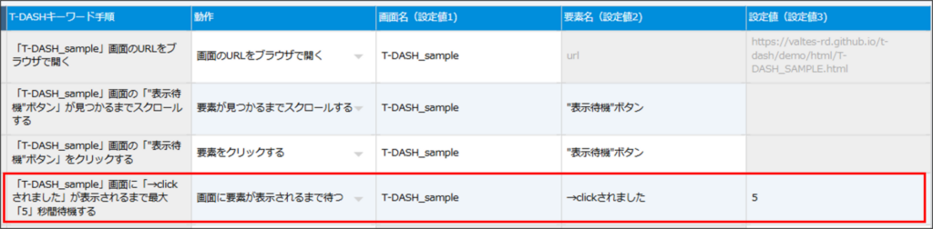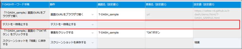 - 自動テスト実行が意図通りに動かない時、本動作にて待機時間を設けると解決する場合があります。