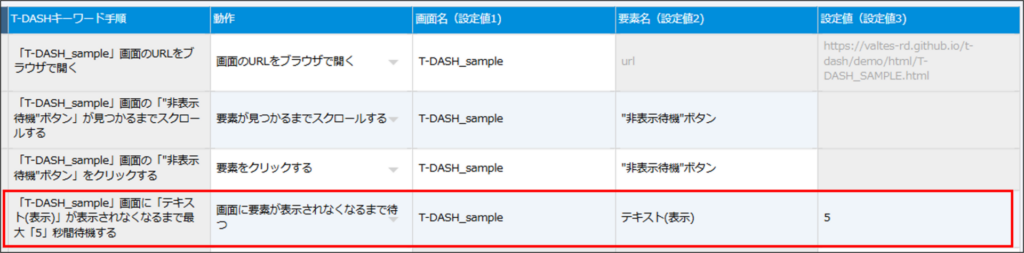 - 指定した要素が画面上で非表示になるまで、テストを停止します。