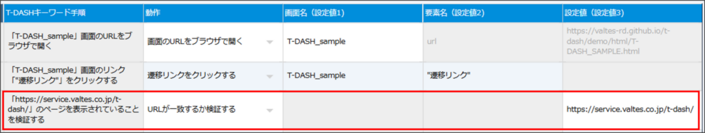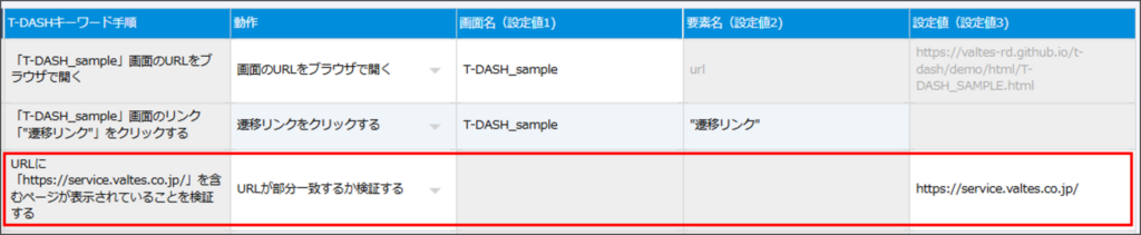 - 指定したURLが含まれていない場合は、本動作がエラーとなり、テスト実行失敗になります。
