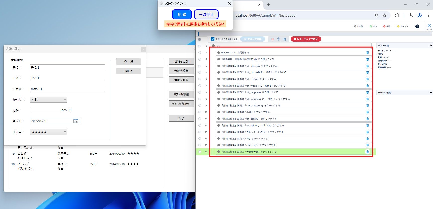操作をレコーディングしテスト手順を作成する(キャプチャ機能)