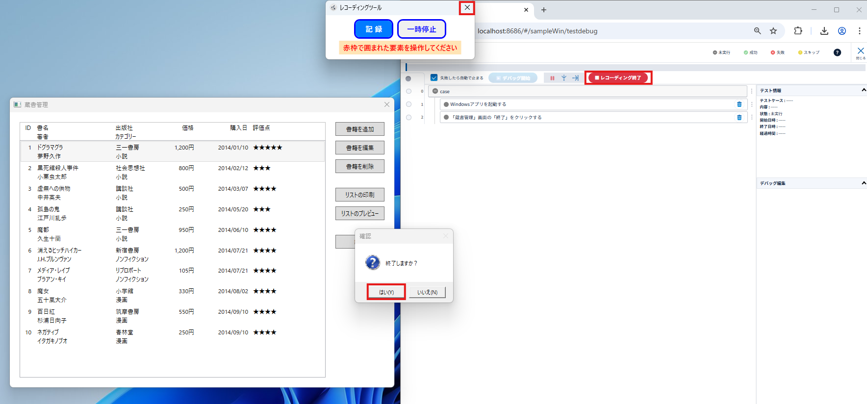 Windowsアプリのレコーディング操作で追加されるテスト手順について