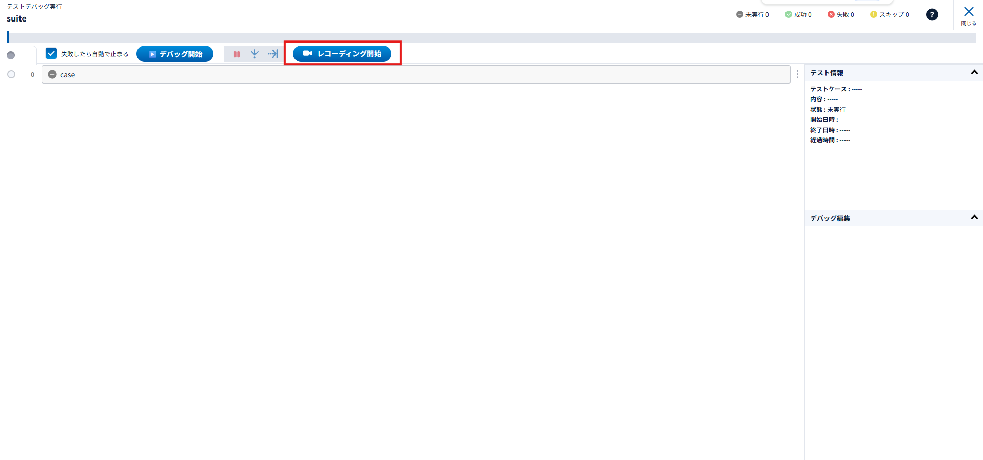 デバッグ開始ボタン | レコーディングした手順をデバッグ実行する |