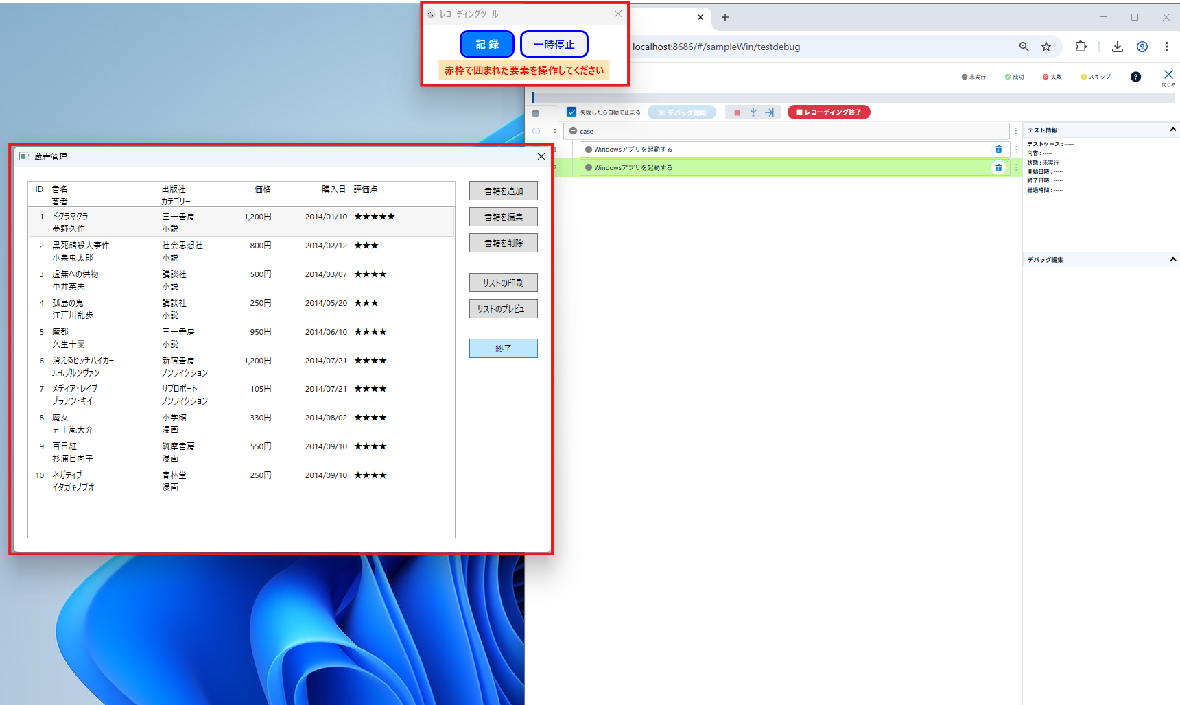 キャプチャ&リプレイ機能では、実際のアプリケーション操作手順をレコーディングし、 その操作手順をデバッグ実行で自動的に再現することができます。