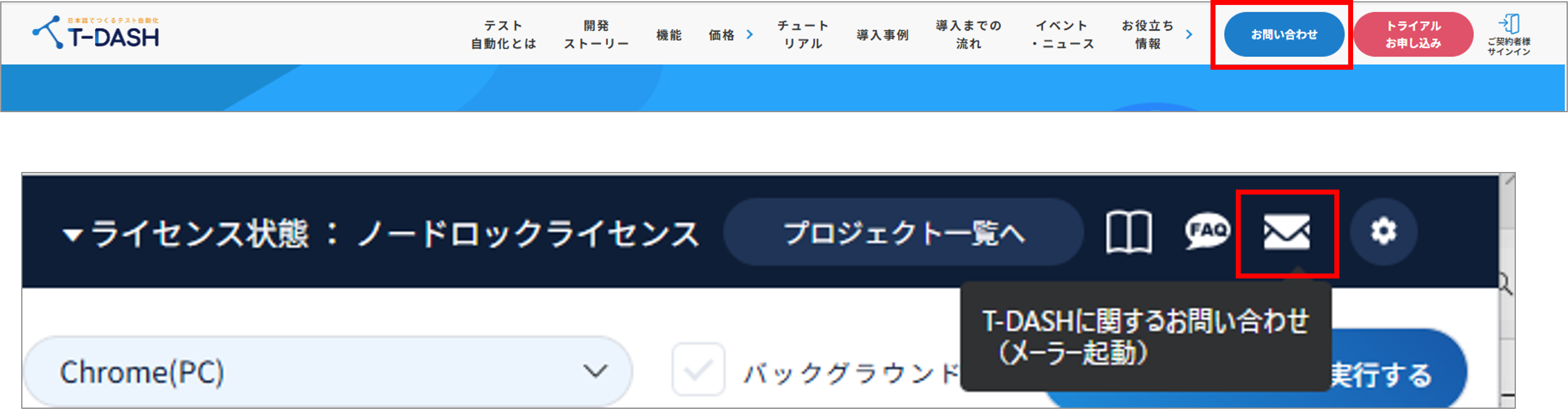 サービスサイトのお問い合わせフォーム、もしくはT-DASH上部のメールアイコンからご連絡をお願いいたします。弊社の担当営業に直接ご連絡でも構いません。