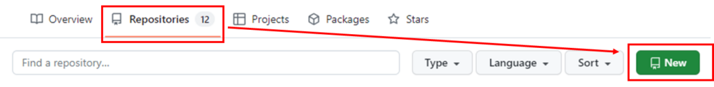 1. Repositoriesタブ内にあるNewボタンをクリックする