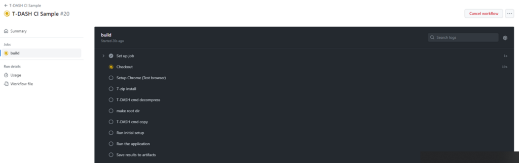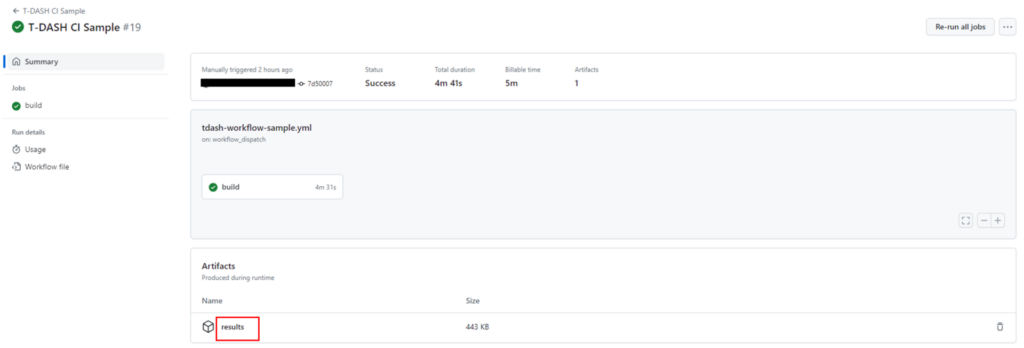 | Save results to artifacts | T-DASHコマンドラインツールのテスト実行結果(reportフォルダ)をGithubActionsのartifactへ保存しています。 |