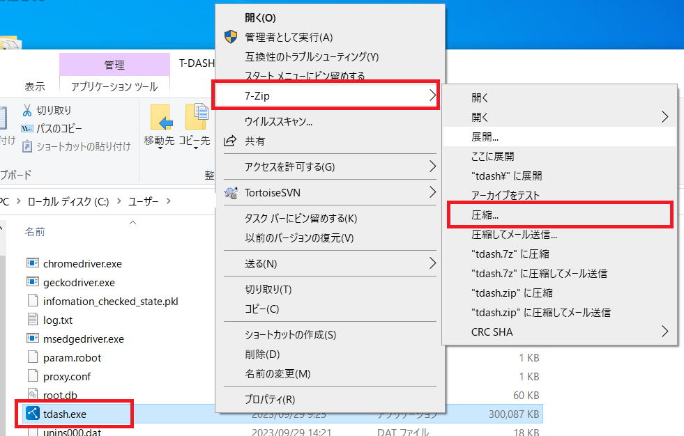 | T-DASH cmd decompress | 7-zipを使用して「tdash.exe」を解凍しています。 |