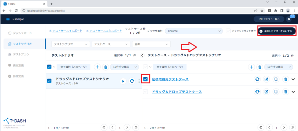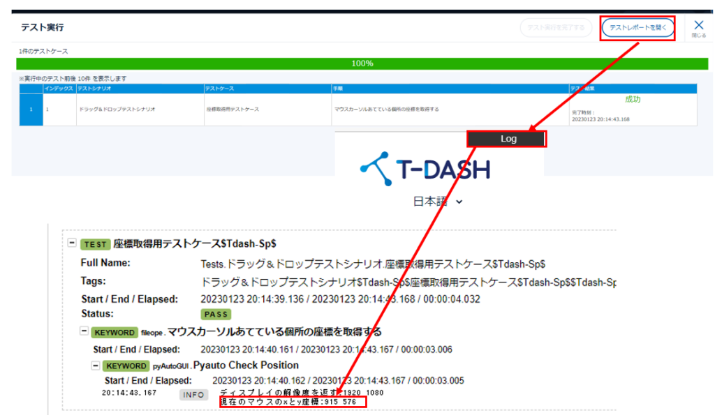 5. 座標取得用テストケースを実行してドロップ先の座標を取得する
