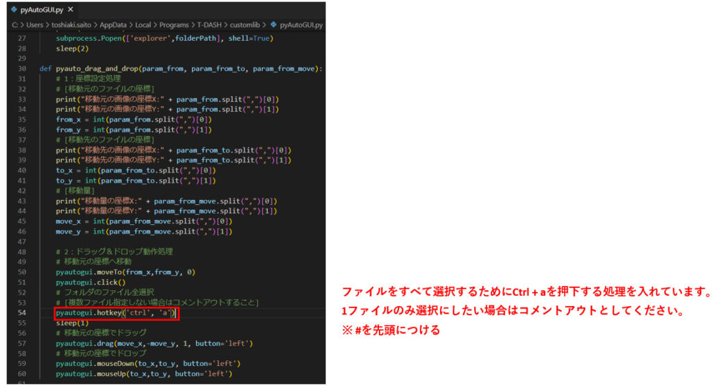 カスタム動作機能でPyAutoGUIを使用したドラッグ&ドロップの手順を記載します。