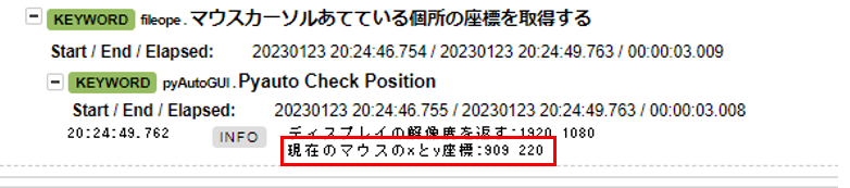 3. 座標取得用テストケースを実行してドラッグ元の座標を取得する