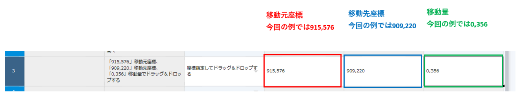 4. テスト結果から座標を特定して移動元の座標をメモする