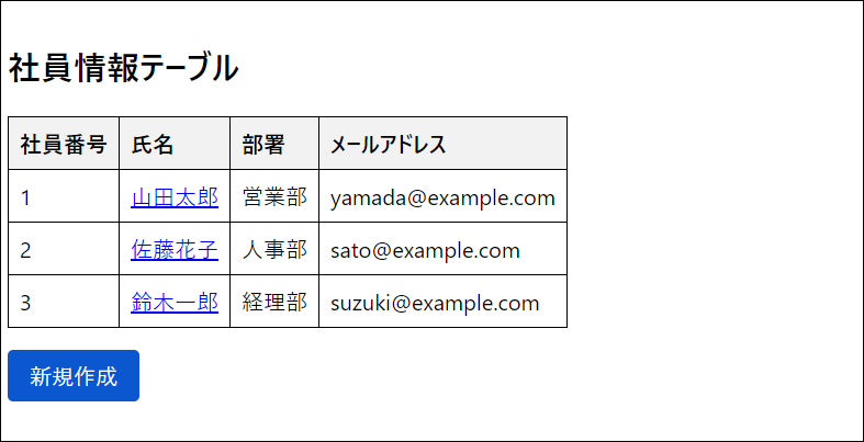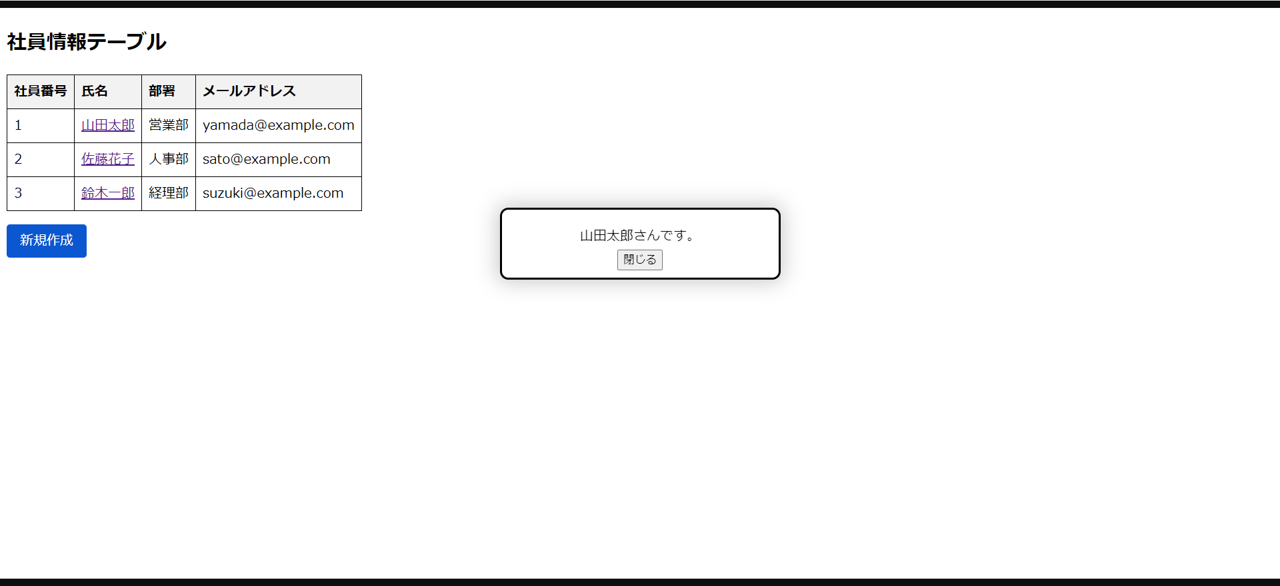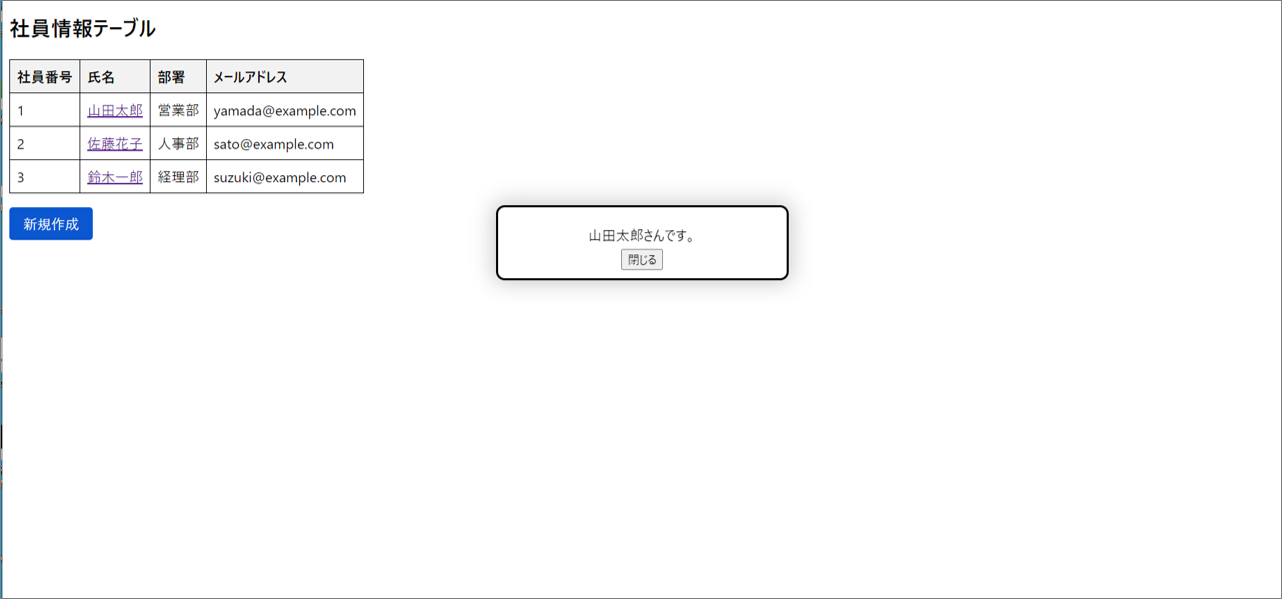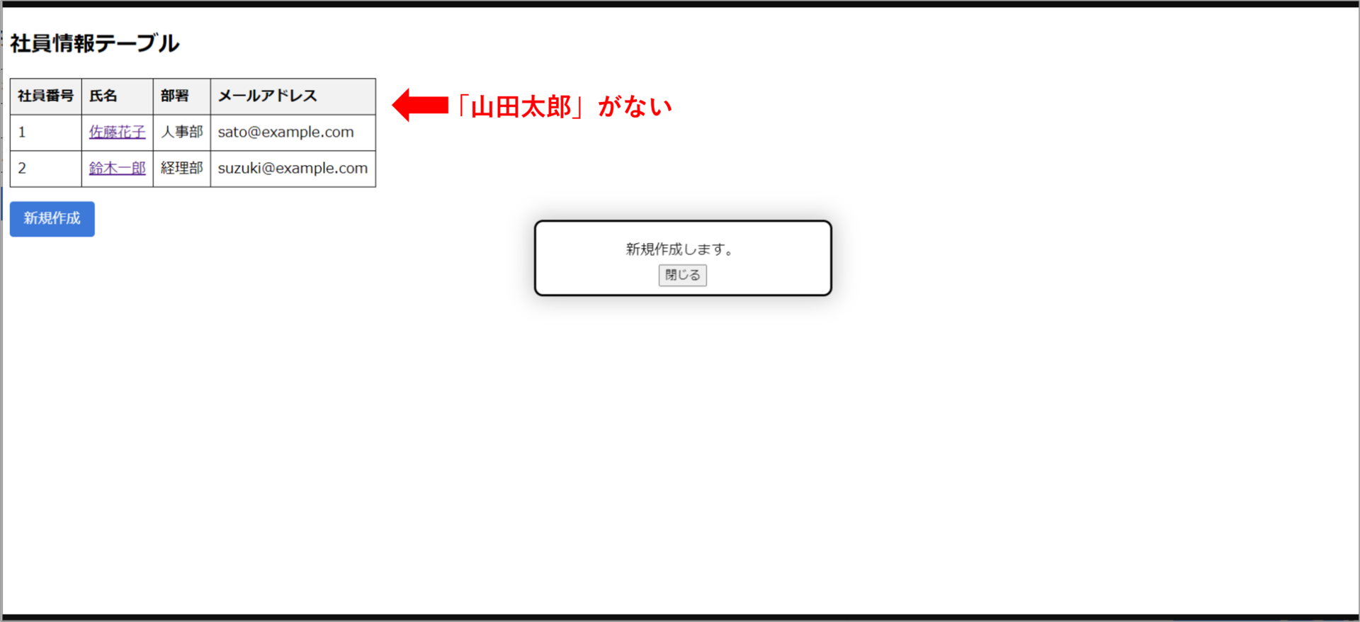 「山田太郎」の名前が一覧にないので、「新規作成」ボタンがクリックされていることが分かります。