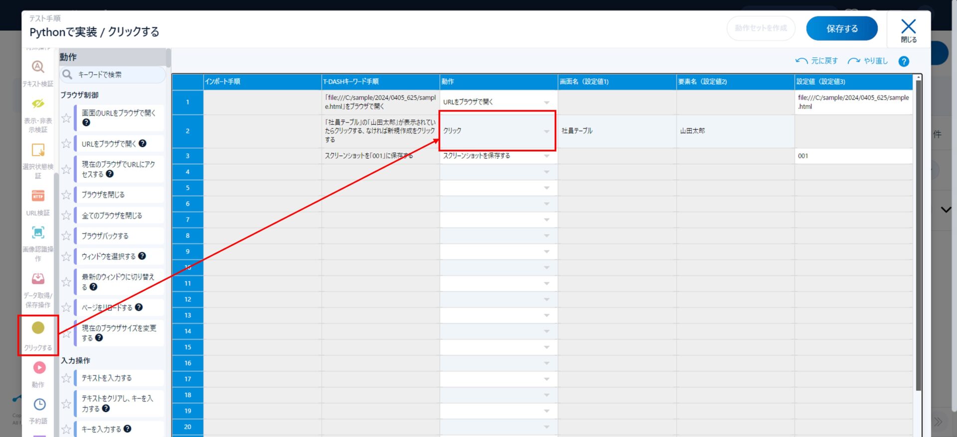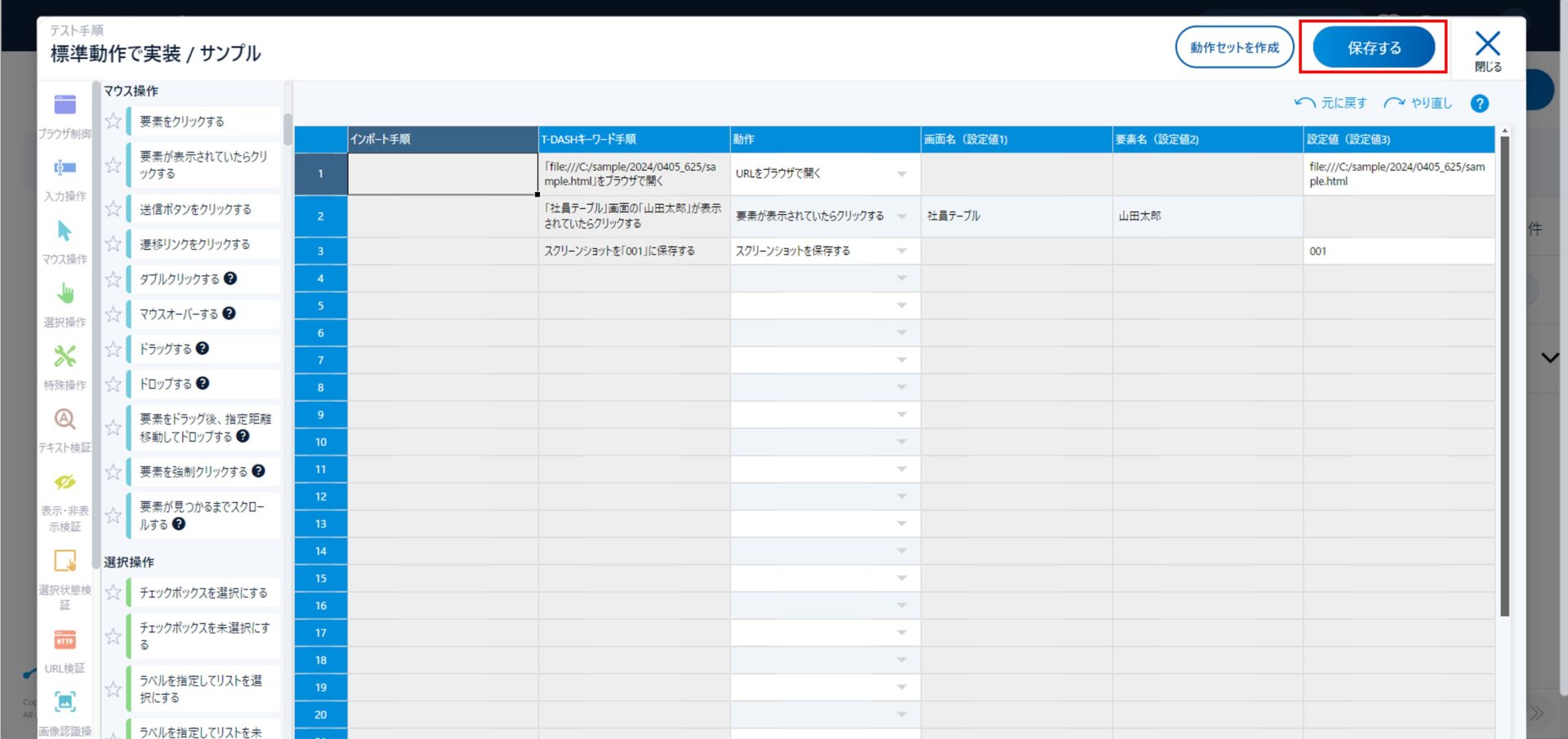 手順作成が完了したら、「保存」をクリック。