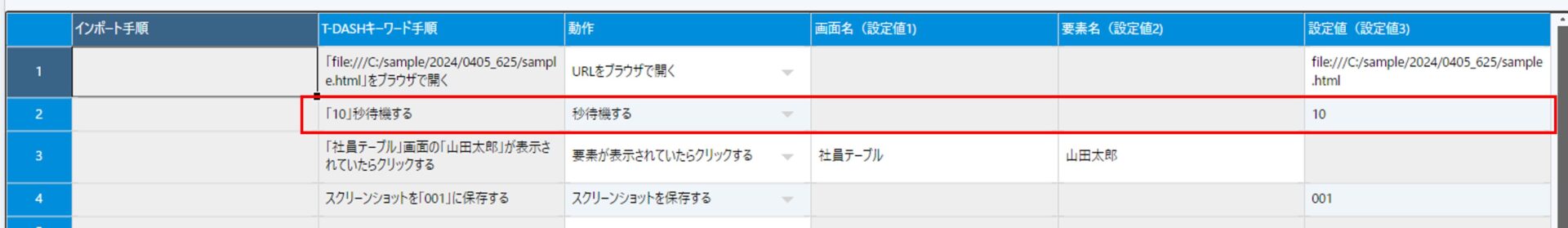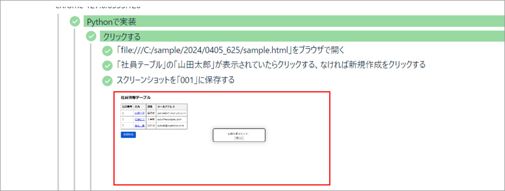 - 指定された要素(今回ならば「山田太郎」という名前)表示されているのかをチェック