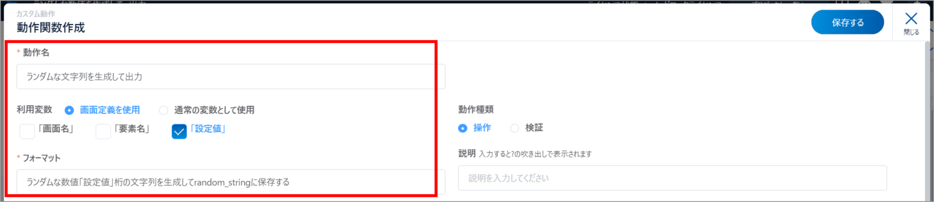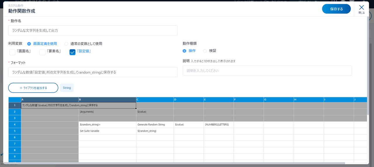 カスタム動作の「Generate Random String」キーワードでランダムな文字列を生成する際に、