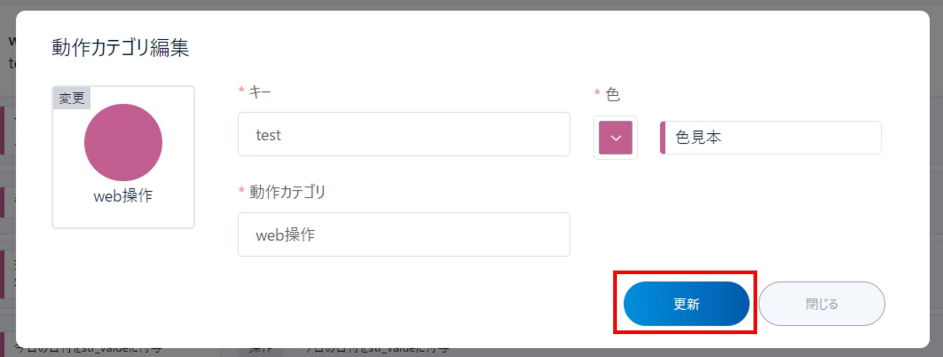 左メニュー「動作定義」タブ→「カスタム動作」を選択し、「+新規カテゴリ作成」をクリックします。