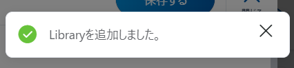 右上に「Libraryを追加しました。」と表示されたら、ライブラリの追加は完了です。