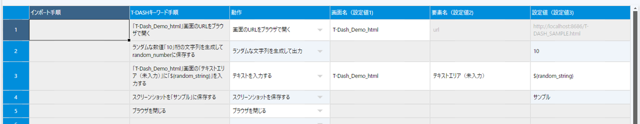 4行目:スクリーンショットに保存する:結果確認のため、スクリーンショットを撮影しています。画像のファイル名は設定値3に記載します。(拡張子はpng)