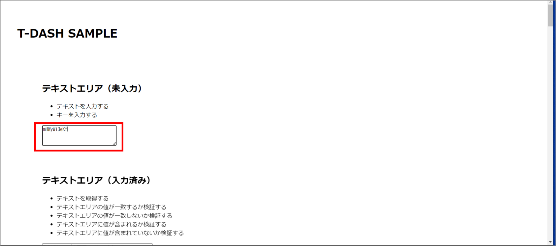テストが実行されて、テキストエリアにランダムな数値が出力されています。