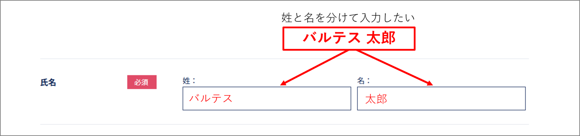 変数に名前の姓と名が格納された状態で、その文字列を分割して入力したい場合があります。