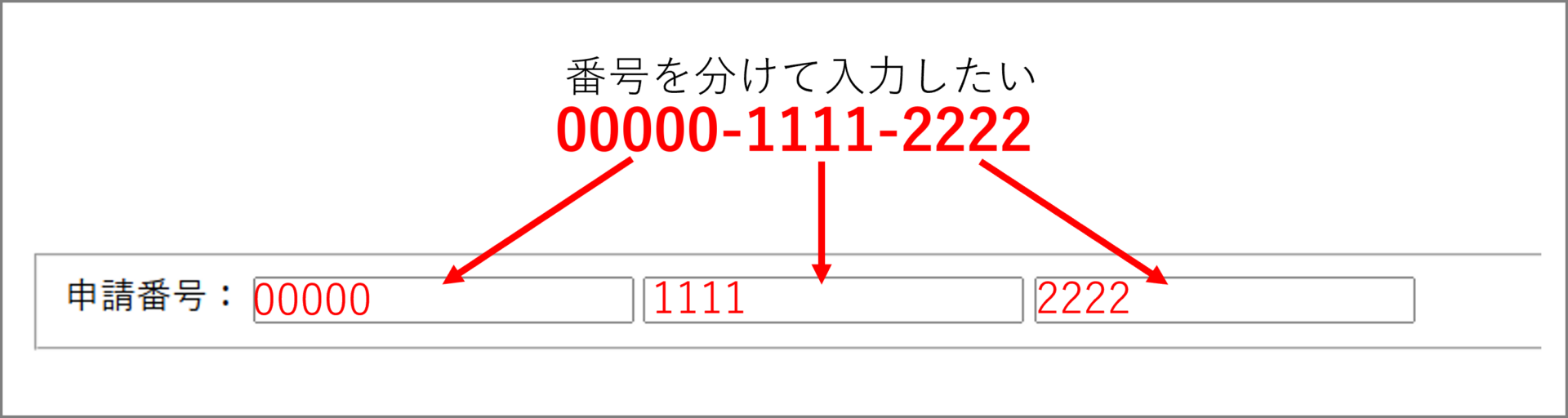 申請番号を、5ケタ- 4ケタ – 4ケタ で出力することができました。