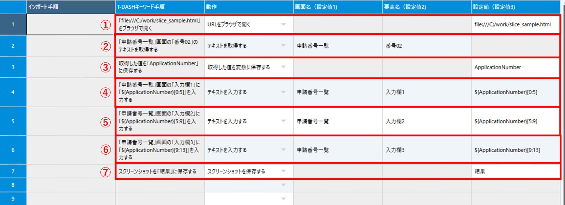 カスタム動作を使って任意の文字列から→スライス指定で出力する