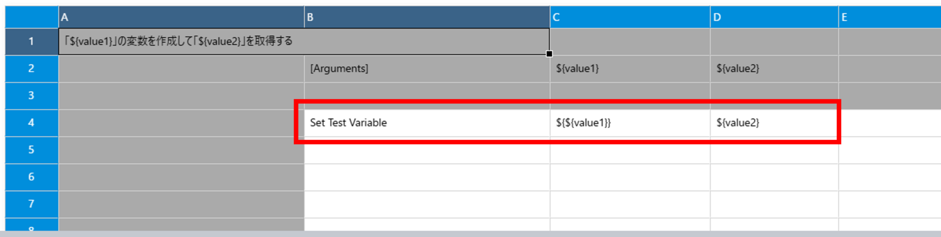 「Set Test Variable」キーワードを使用して変数を作成します。