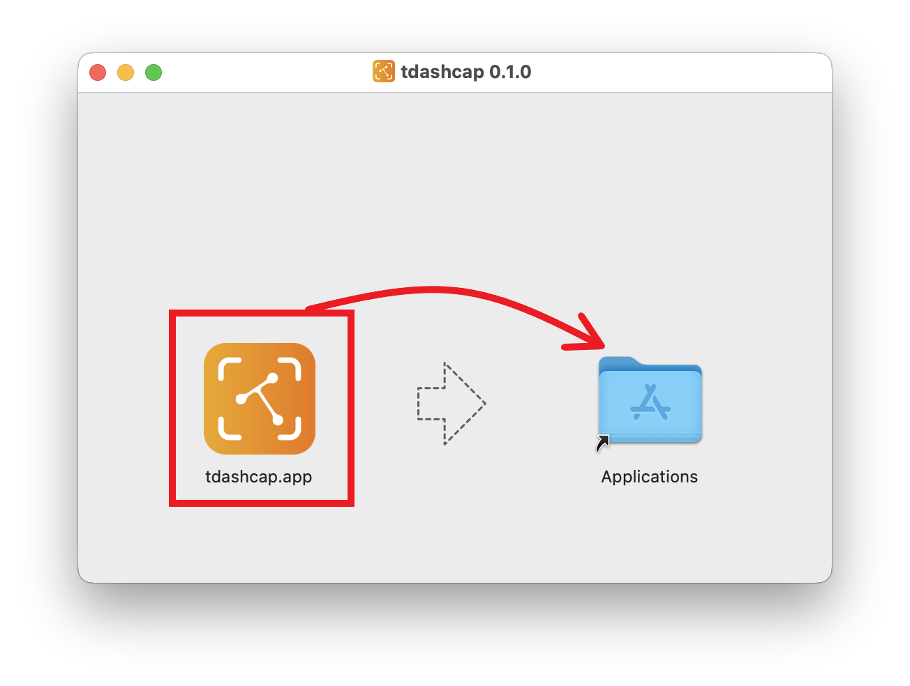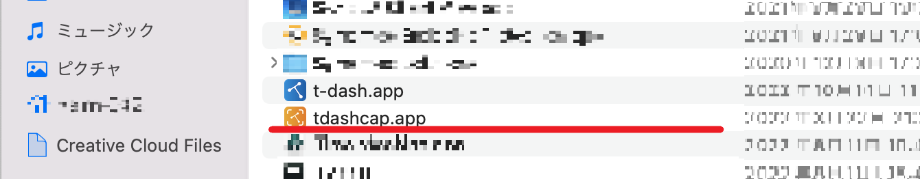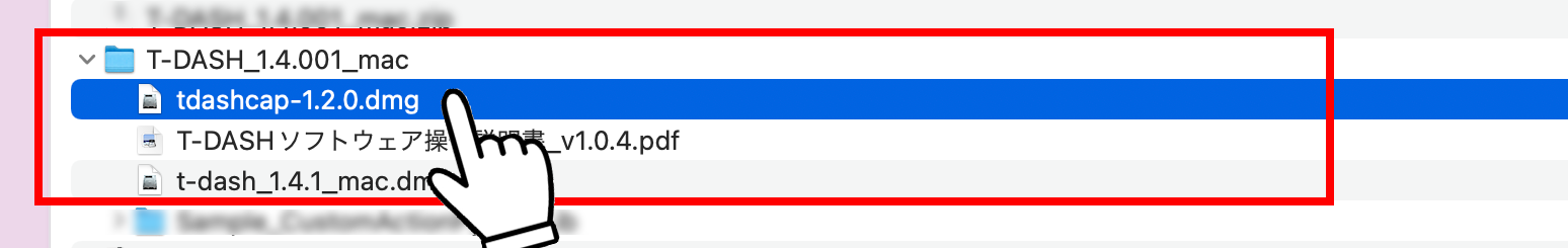 - ダウンロードしたフォルダから、「tdashcap-***.dmg」をクリック(***はバージョンです)
