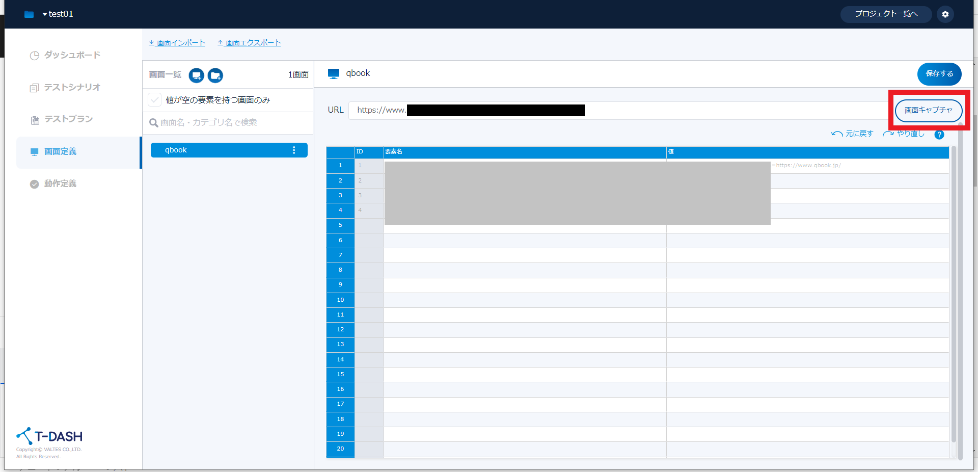 - T-DASH上で画面定義を作成する際に、「画面キャプチャ」クリックで起動